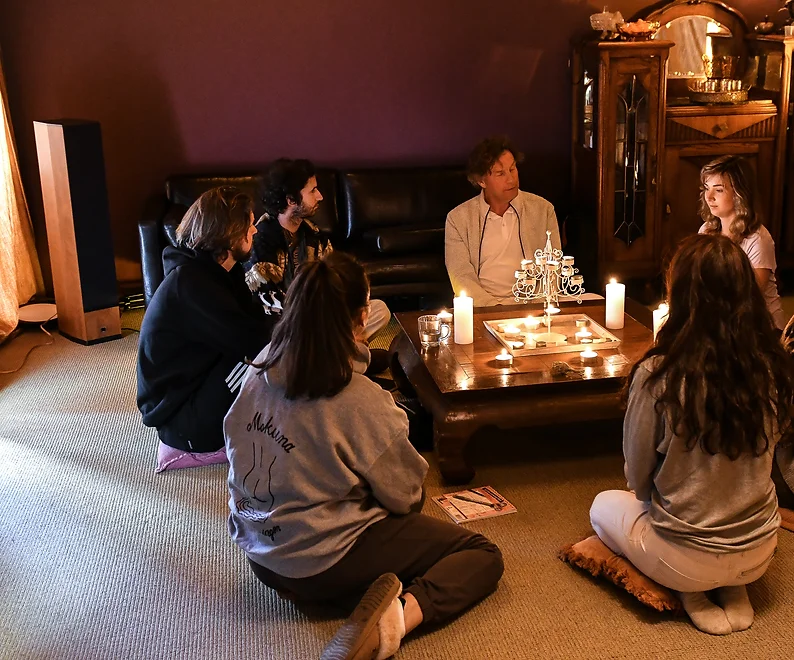 Na je reis is er een lichte vegetarische maaltijd, gevolgd door een sharing, waarbij je deelt wat je wilt delen. Dat is een belangrijk onderdeel van je integratieproces.